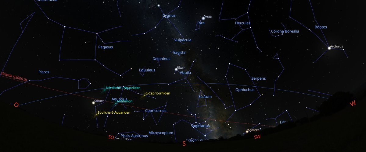 Milchstraße; Leier, Schwan, Adler und Schütze prägen den Himmelsanblick. Der Mond mit seinen Kratern, der Ringplanet Saturn sind Beobachtungsobjekte dieser Führungsnacht. Ein Beobachtungsparadies auch für Ferngläser.